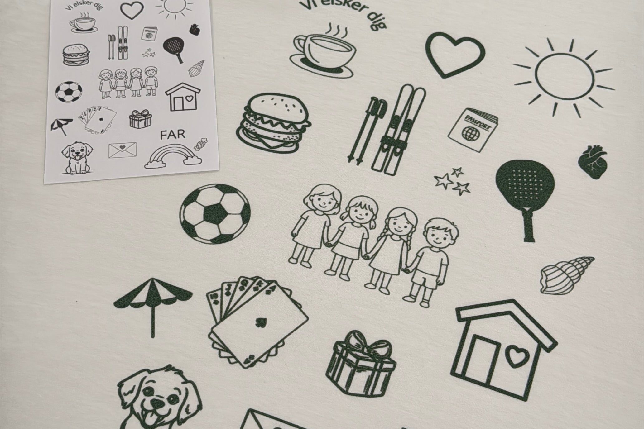 VI PRINTER DIN COLLAGE PRÆCIS, SOM DU HAR DESIGNET DEN, DIREKTE PÅ T-SHIRTEN