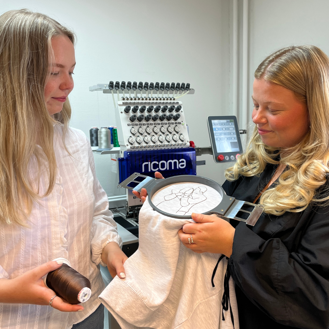 DU DESIGNER OG VI BRODERER ELLER PRINTER DIT PERSONLIGE DESIGN.