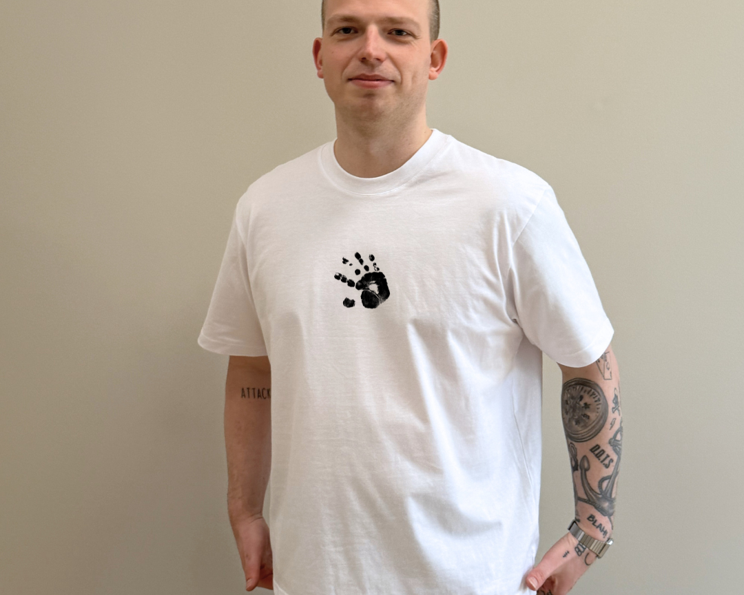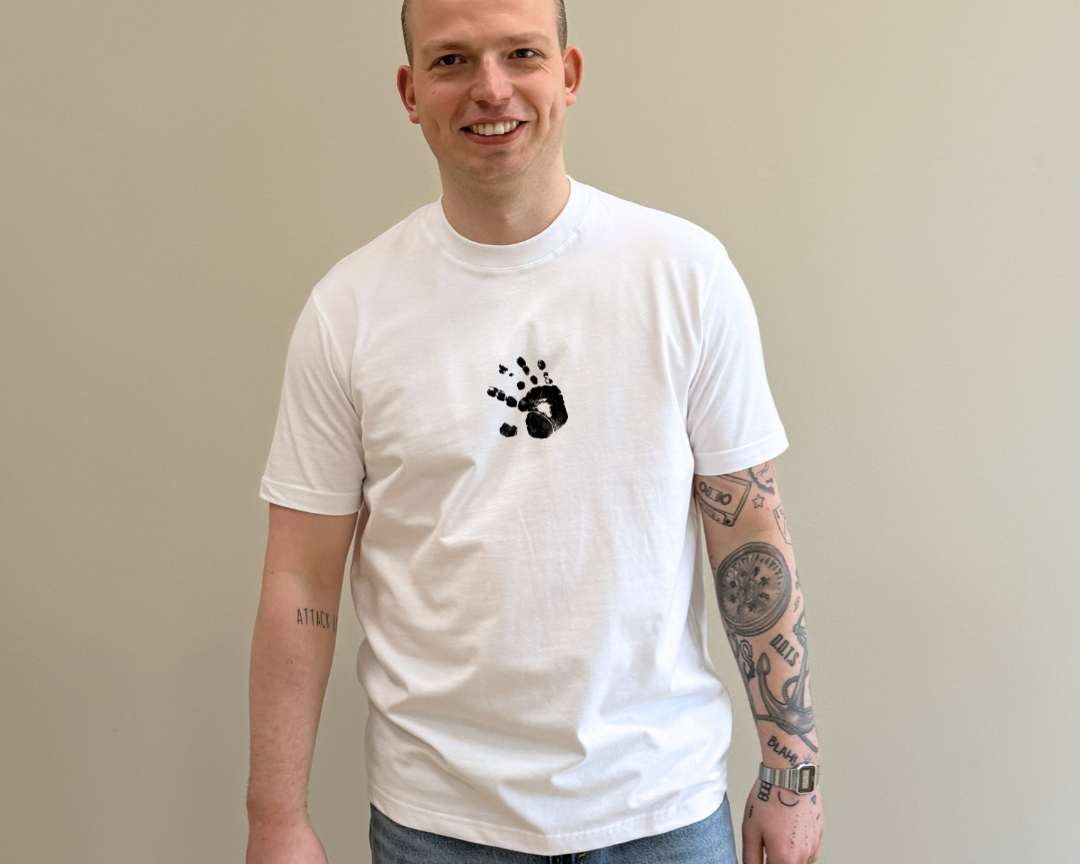 Der kan forekomme små tråde i andre farver fra produktionen af selve t-shirten.
