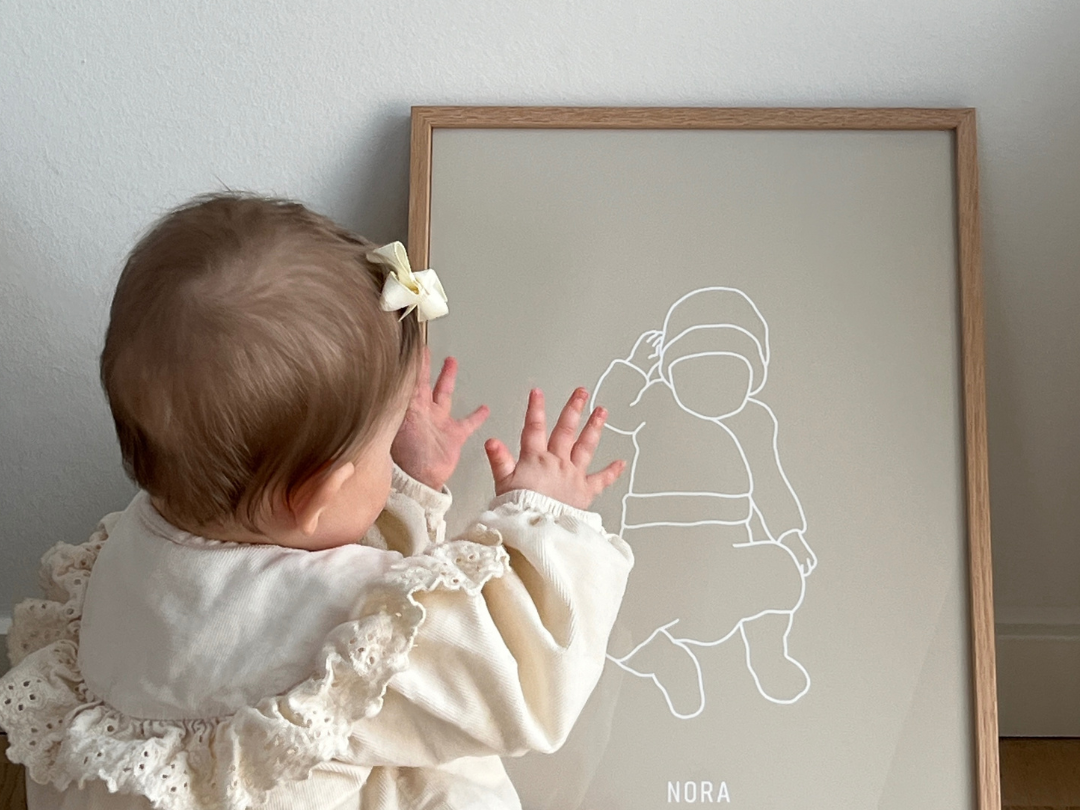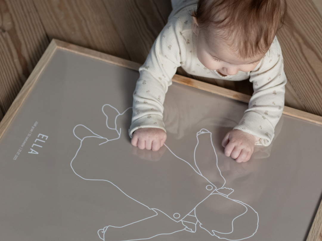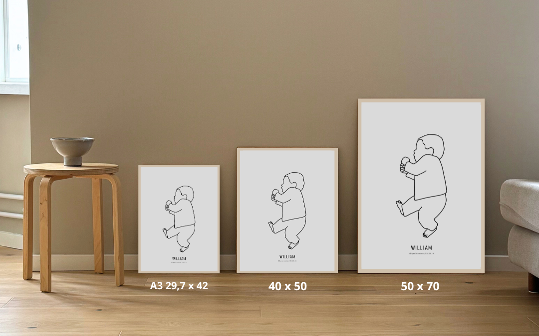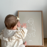 Vi tegner dit personlige outline billede ud fra dit vedhæftede baby billede, som derefter bliver printet til en plakat.