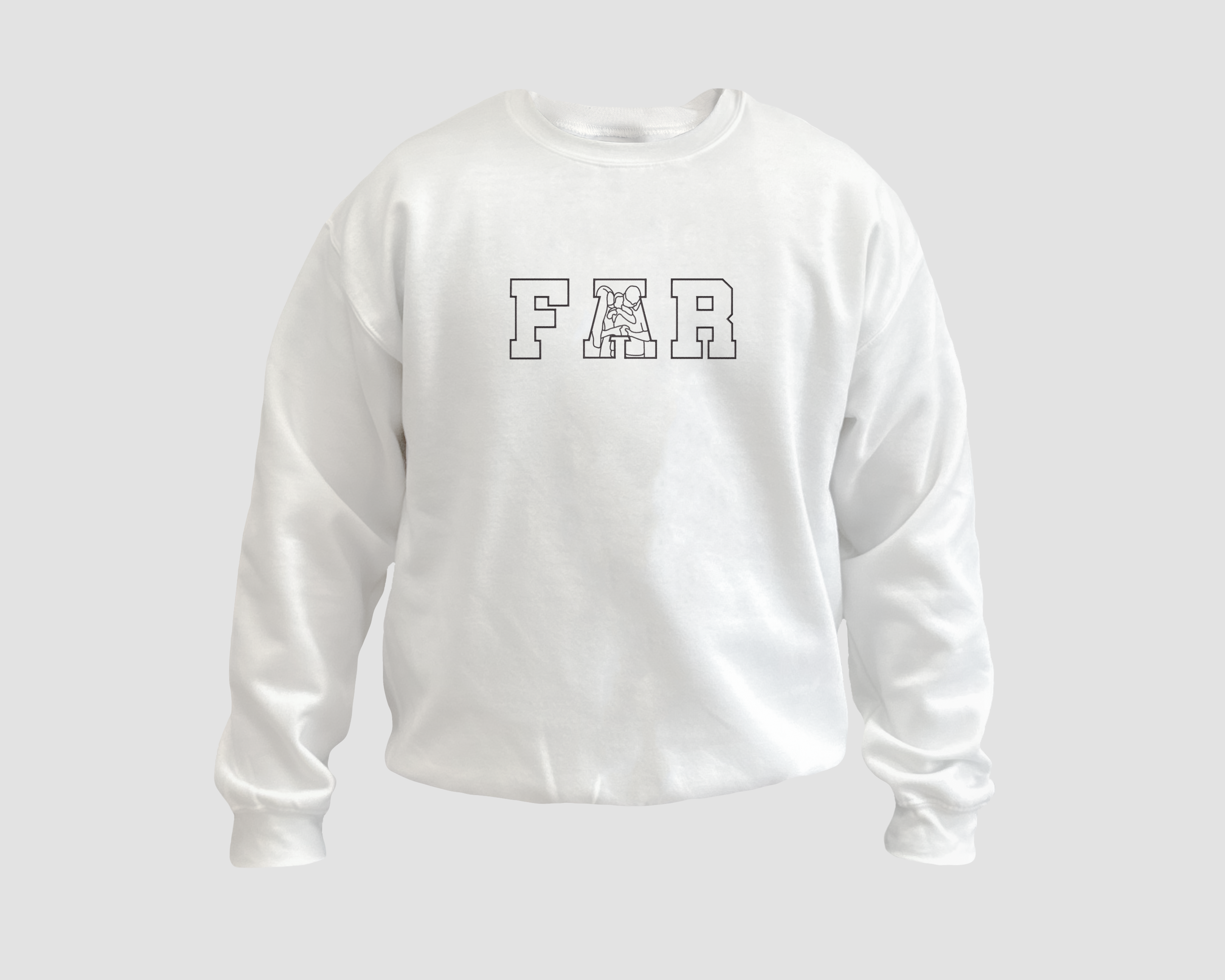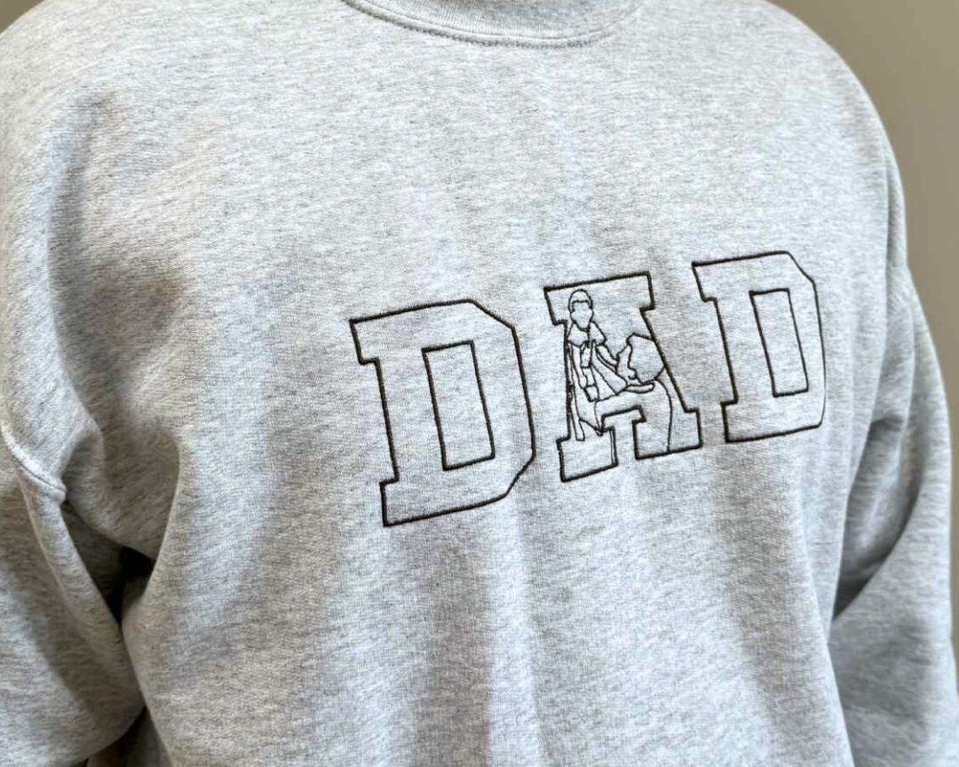 Vi tegner dit personlige outline billede ud fra dit vedhæftede billede, som derefter bliver broderet på sweatshirten og tilført en college outline.